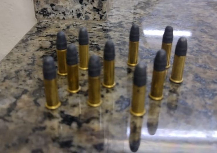 Em revista veicular foi localizado os objetos do furto bem como 11 munições de calibre 22 intactas.