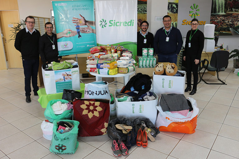 Durante um mês o Sicredi realizou a campanha deixando pontos de coleta de alimentos e agasalhos nos Supermercados da cidade – Super Roque, Cotricampo, Centro de Compras Daiane e Super Salante.