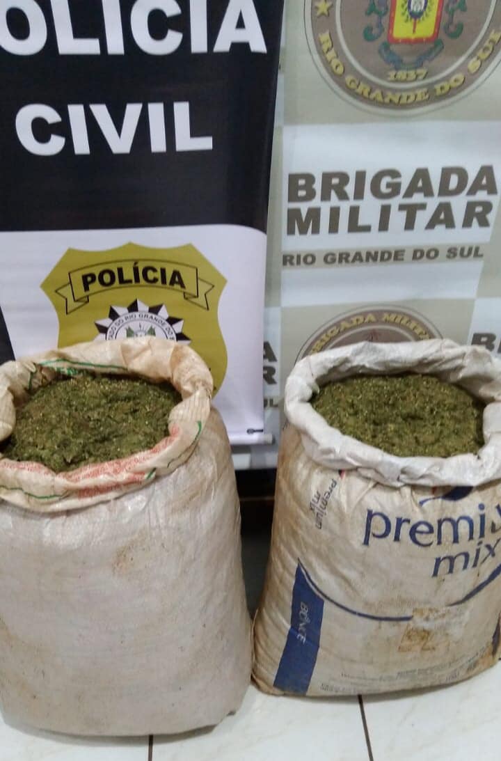 A Polícia Civil, em ação conjunta com a Brigada Militar, por volta de 3h, do dia 22.08.22, na localidade de Lajeado Grande, em Tiradentes do Sul, RS, prenderam em flagrante um indivíduo na posse de aproximados 21 kg de maconha tipo Skank, acondicionados em dois sacos.