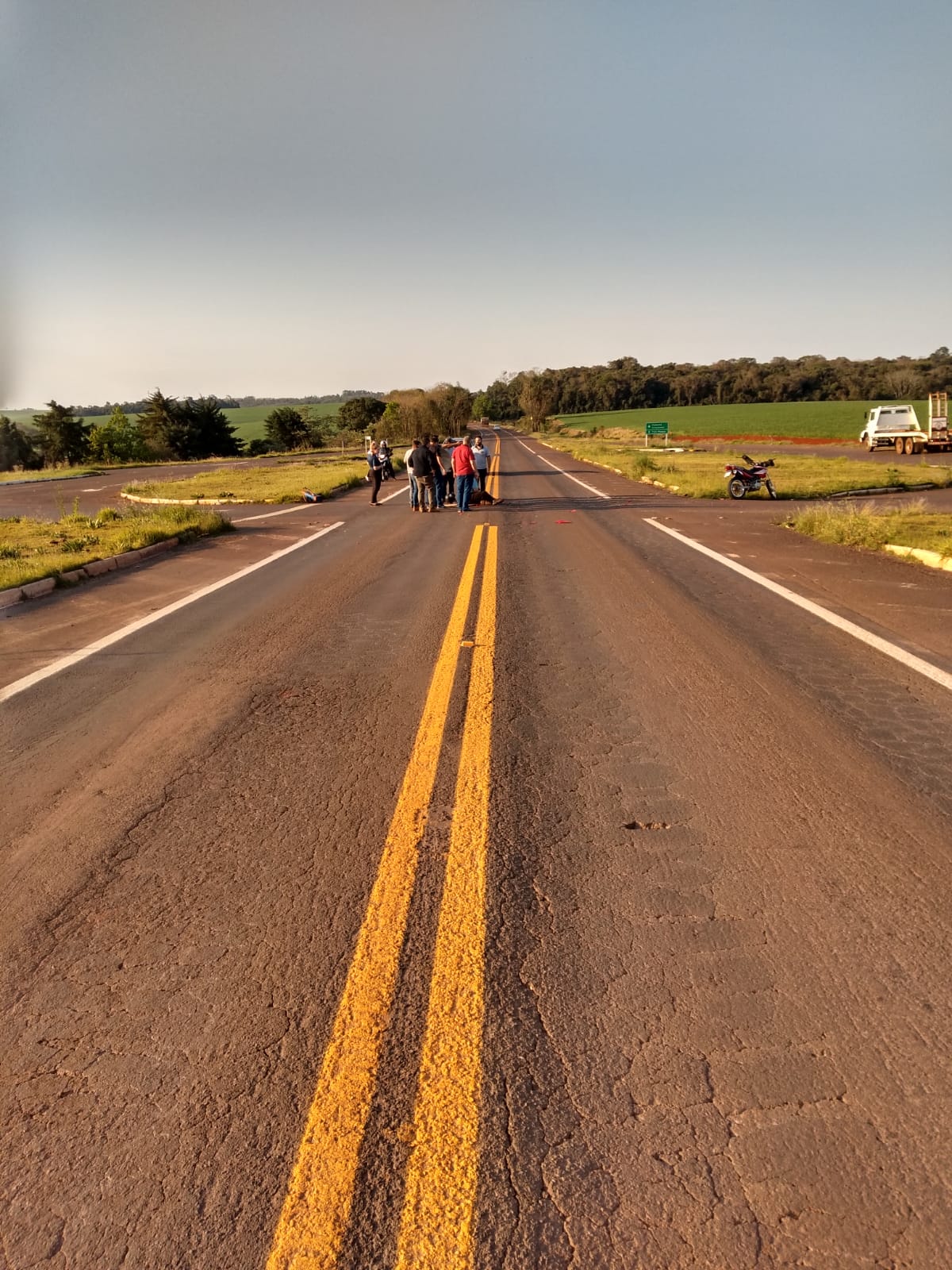 O caminhão com placas Mercosul e a motocicleta seria do município de Campo Novo.