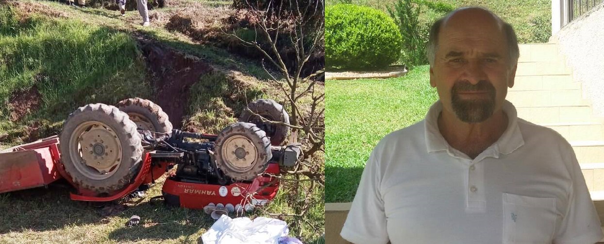 Um agricultor identificado como Irani Morandi, 66 anos, morreu por volta das 10h desta terça-feira, 30, em um tombamento de trator, em Linha Amadeu, no interior de Farroupilha.