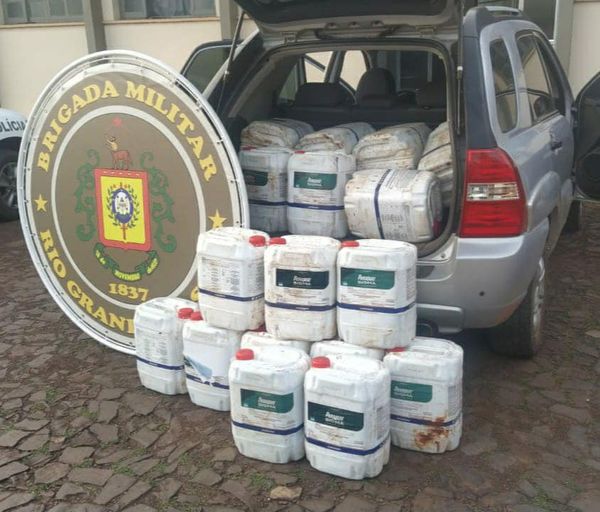 A prisão ocorreu na RS 207, após abordagem de um veículo, sendo localizado no seu interior 20 galões de agrotóxicos de origem estrangeira, além de 2,6 gramas de cocaína e R$ 403,00 em moeda corrente.