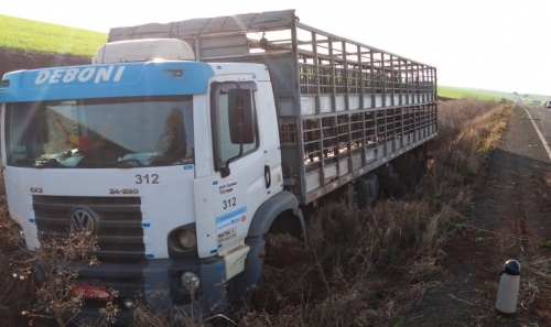 Por volta das 5h00min, um caminhão Volkswagen saiu da pista no trajeto entre o perímetro urbano de Humaitá e o trevo do CITEGEM.