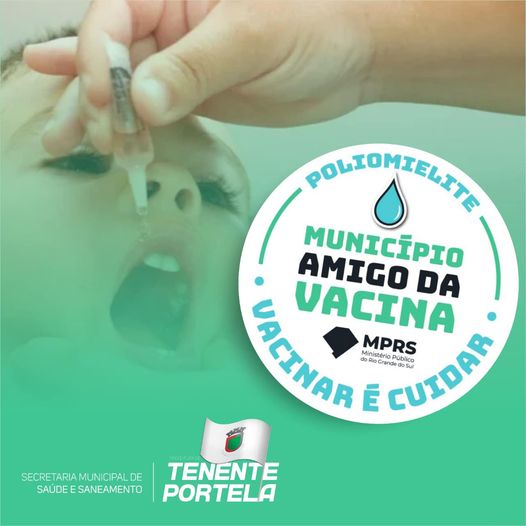 Reconhecimento foi concedido pelo Ministério Público do RS e leva em consideração o desempenho obtido na imunização contra a poliomielite, Tenente Portela é um “Município Amigo da Vacina”.O título foi concedido pelo Ministério Público do Rio Grande do Sul em reconhecimento ao desempenho obtido na imunização contra a poliomielite. Conforme os dados oficiais, Tenente Portela atingiu 118,54% da meta, bem superior aos 95% preconizada pela Campanha Nacional de Vacinação. O público-alvo é crianças menores de cinco anos de idade.