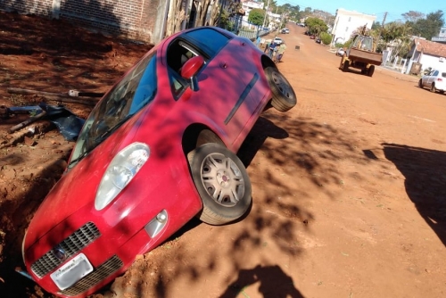 Carro cai em vala de obra na Rua Inhacorá em Crissiumal
