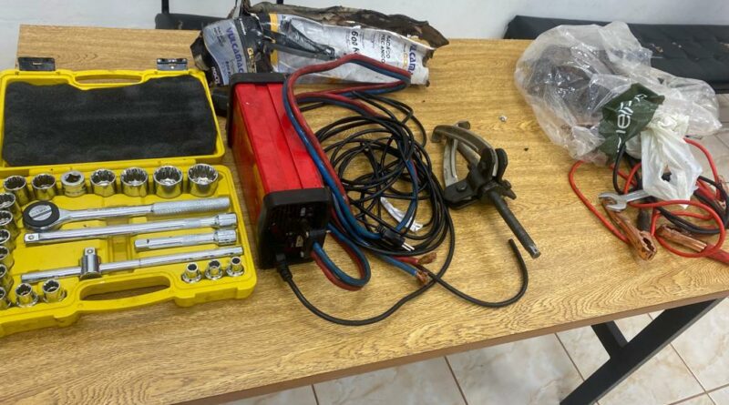 Por já conhecerem o individuo, os policiais indagaram de onde ele havia subtraído as ferramentas, mais o mesmo não soube explicar de onde havia pego os produtos. Neste mesmo momento, os policiais avistaram próximo dali um veiculo que estava com sinais de arrombamento. O individuo de 26 anos confessou que havia praticado o furto dos produtos que estavam no porta malas do veículo.
