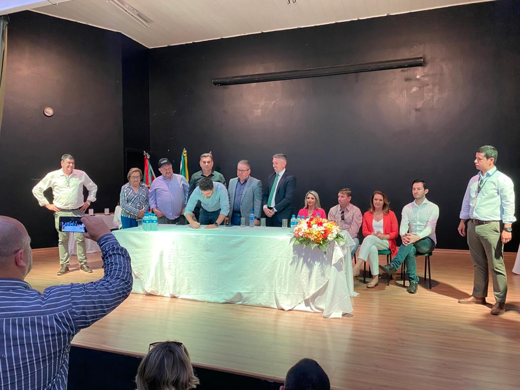 Nesta segunda-feira (24), no município de Horizontina, em ato solene, o Governador do Estado do Rio Grande do Sul, Ranolfo Vieira Junior, assinou a Ordem de Serviço para o início da obra de construção da Ponte sobre o Rio Turvo na ERS 518 que liga os municípios de Campo Novo e Braga.