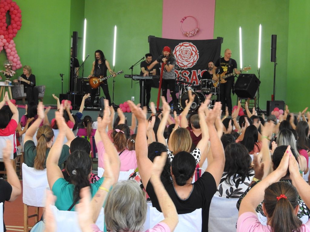 Mais de 600 mulheres compareceram ao ginásio da Praça Presidente João Goulart, na tarde da segunda-feira (24 de outubro), para assistir a palestra show denominada: ‘arte para viver, música para não enlouquecer’. A atividade faz parte da campanha Outubro Rosa, organizada conjuntamente por várias secretarias municipais.