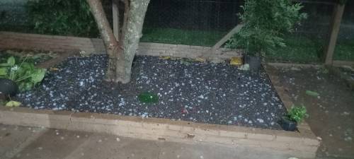 Na cidade de Crissiumal a chuva foi forte, porém o granizo foi miúdo, quase imperceptível em meio a água.