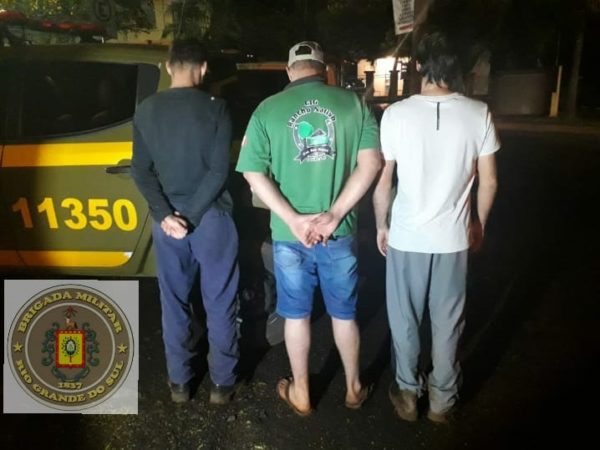 Os policiais de Catuipe, com apoio o POE (Pelotão de Operações Especiais de Ijuí), deslocaram a, até a localidade, realizando diligências nas estradas, logrando êxito em localizar três indivíduos junto a uma camionete da empresa TRR Rigonato, sendo abordados e identificados como: R.H.R., de 27 anos, natural de Ijuí, sem antecedentes criminais; E.J.R., de 19 anos, natural de Ijuí, sem antecedentes criminais; e J.C.O., de 27 anos, natural de Catuipe, com antecedentes como adolescente infrator.