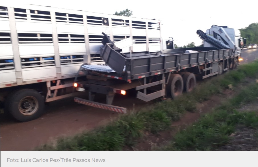 Conforme informações preliminares, dois caminhões, um porcadeiro de Três Passos e outro com placas de Carazinho, seguiam no sentido de Três Passos quando, em frente ao Posto Ipiranga, houve a colisão lateral, bloqueando uma das pistas.