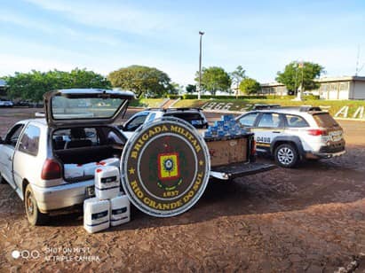 Na ocasião, além dos veículos foram apreendidos 360 (trezentos e sessenta) litros de agrotóxicos, 10.000 (dez mil) maços de cigarros contrabandeados e 01 (um) aparelho celular.