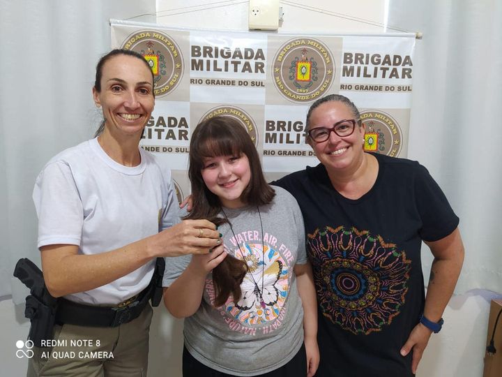 Faça você também como a Sabrina Pressi, que compareceu junto com sua mãe no 3° Pelotão da Brigada Militar de Tenente Portela, e fez a entrega de suas mechas para a Soldado Janine Rohden Mainardi.