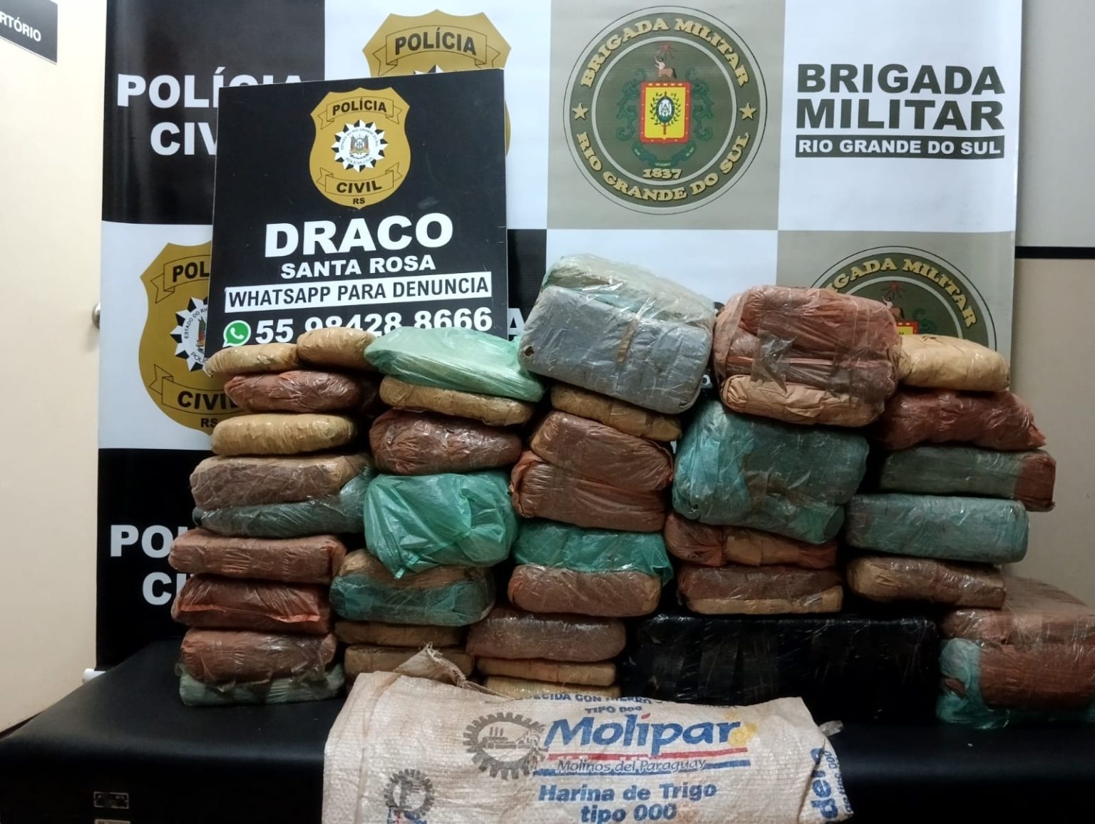 Na tarde desta segunda-feira (26) a Brigada Militar durante a Operação Hórus Fronteira em conjunto com o setor de inteligênia e a Delegacia de Repressão as Ações Criminosas Organizadas (Draco) de Santa Rosa, obtiveram exito na apreensão de 34 volumes de maconha, pesando 48,405 kg.