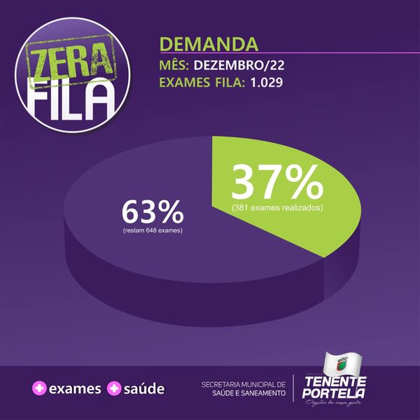 Há menos de um mês, a Prefeitura de Tenente Portela lançou o programa “Zera Fila”. A iniciativa, coordenada pela Secretaria Municipal de Saúde e Saneamento, foi implantada com o objetivo de atender 100% dos pacientes que estão na lista de espera de exames encaminhados através da Saúde Pública Municipal.