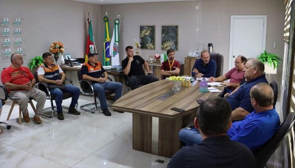 Os reflexos da estiagem que afeta o Município foram pauta de reunião realizada na tarde desta terça, 3, no Gabinete do Prefeito. Além do chefe do Executivo, Rosemar Sala, e de integrantes do Governo Municipal, participaram representantes de entidades, de sindicatos, de empresas, de cooperativas e de instituições financeiras. Também compareceram integrantes da Coordenadoria Regional de Defesa Civil.