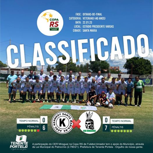 A participação do CER Miraguai na Copa RS de Futebol Amador tem o apoio do Município, através da Lei Municipal do Patrocínio (2.790/21). Prefeitura de Tenente Portela - Orgulho de nossa gente.