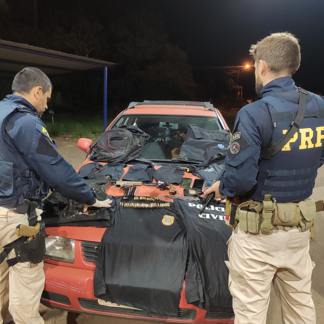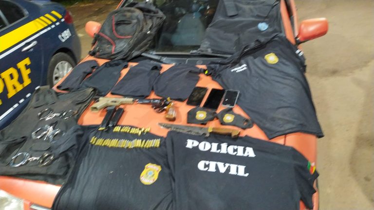Logo após, os PRFs realizaram buscas no local e conseguiram capturá-los. Dentro de uma mochila que estava com um dos presos foram encontrados vários uniformes similares aos da Polícia Civil e da Polícia Federal.