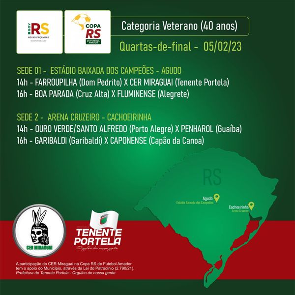 A participação do CER Miraguai na Copa RS de Futebol Amador tem o apoio do Município, através da Lei do Patrocínio (2.790/21). Prefeitura de Tenente Portela - Orgulho de Nossa Gente.