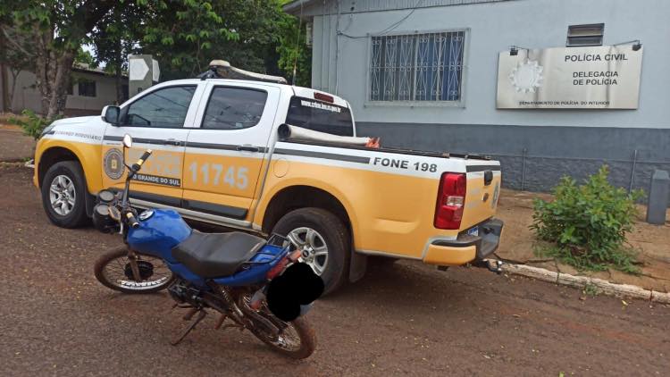 Na tarde desta sexta-feira, 3 de fevereiro, por volta das 17:20h, na ERS 330 KM 36, o 3° Pelotão da Polícia Rodoviária Estadual de Santo Augusto, durante barreira simultânea de trânsito, avistou uma motocicleta que seguia ultrapassando veículos em alta velocidade, e em faixa contínua amarela, foi emanada a ordem de parada sendo constatado que a motocicleta estava com chassi batido e número do motor intacto.