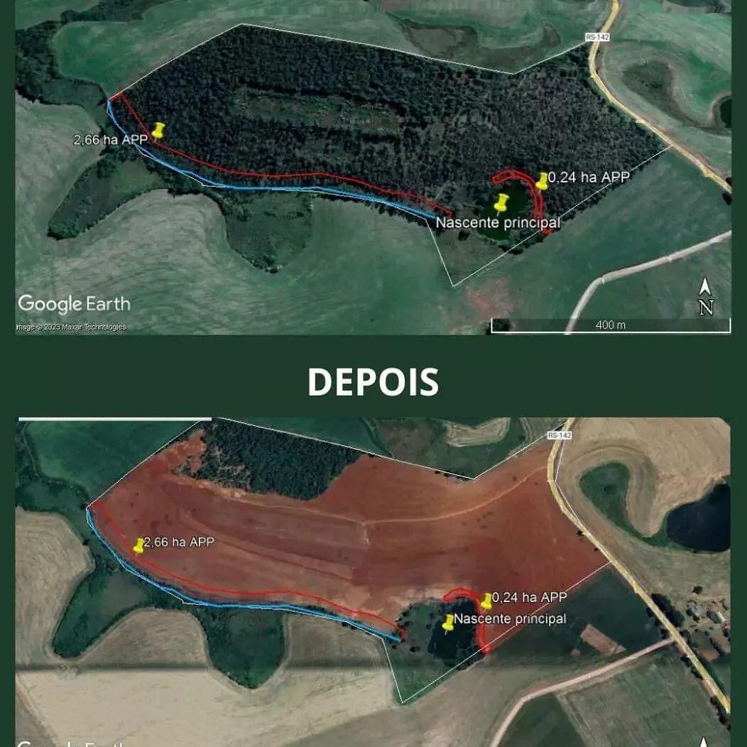 Durante fiscalização ambiental, a equipe, do 3° Batalhão Ambiental da Brigada Militar de Carazinho, flagrou, nesta segunda-feira (13/02), a destruição de vegetação, exótica e nativa, em uma área de 41 hectares (410. 000 metros quadrados), no interior do município.