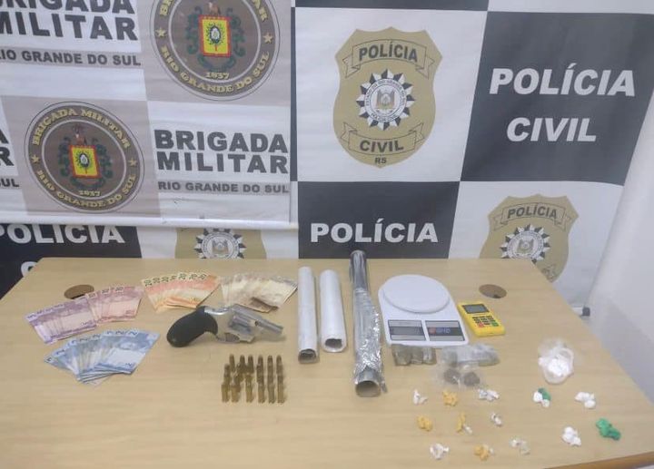 Na residência da suspeita, que, segundo as investigações, foi a mandante do crime, foram localizadas e apreendidas droga, balança de precisão, munição e uma arma de fogo.