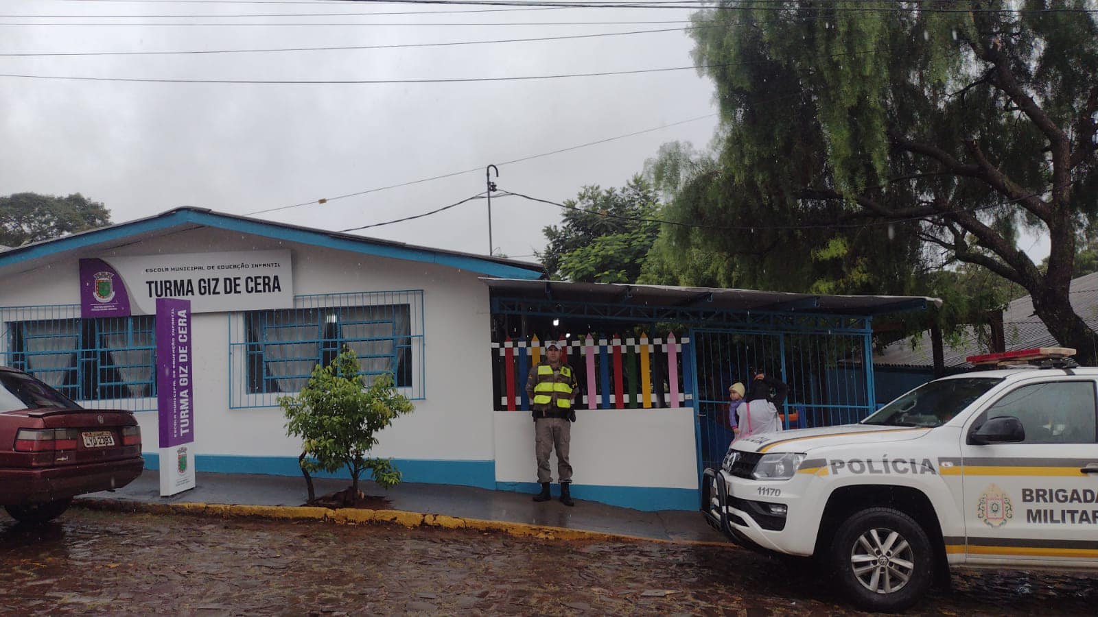 Outra iniciativa foi a designação de vigias para atuar em horário escolar. Nesta questão, a Brigada Militar, atendendo determinação do Governo Estadual, intensificou as patrulhas e tem estado presente diariamente em estabelecimento de esnsino do Município, incluindo a rede estadual.