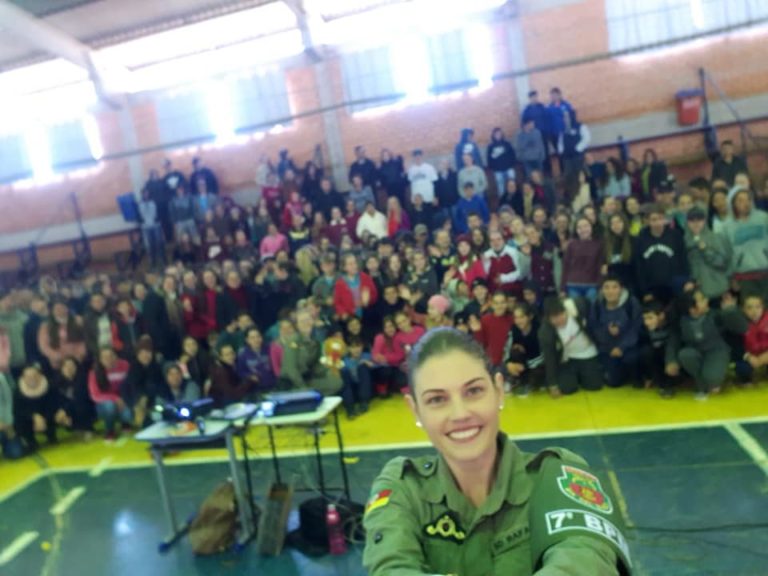 Na manhã desta terça-feira (16/07) instrutoras do Proerd do 7° BPM realizaram uma palestra para 280 alunos do 5° ao 9° ano no ginásio municipal da cidade de Derrubadas sobre prevenção ao uso de drogas.