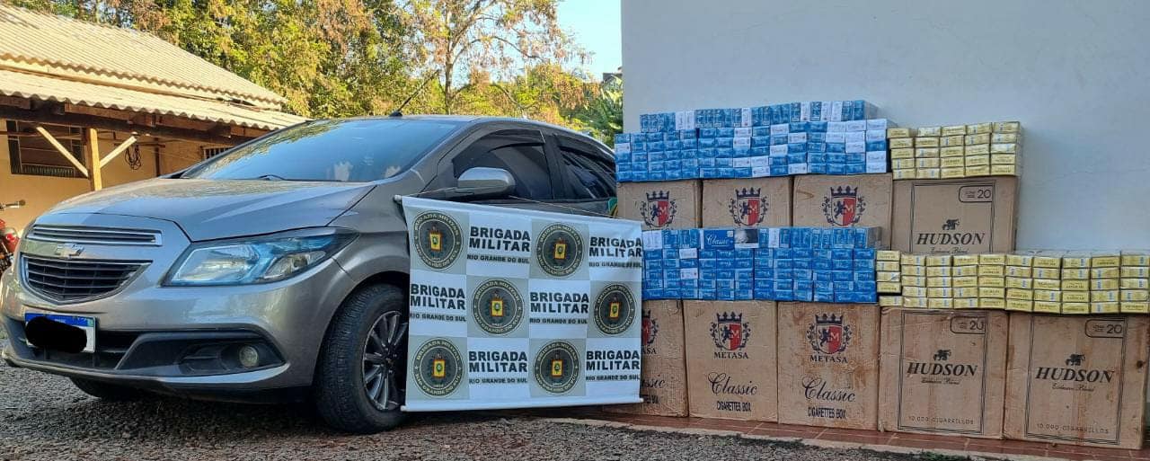 Brigada Militar apreende veículo e cigarros contrabandeados em Crissiumal.