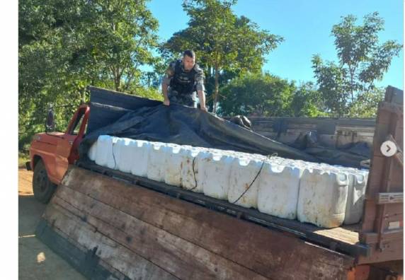 Na manhã desta sexta-feira (02) policiais militares do 4° BPAF realizaram a apreensão de um Caminhão F350, carregado com 109 (cento e nove) galões de veneno, 20 litros cada.