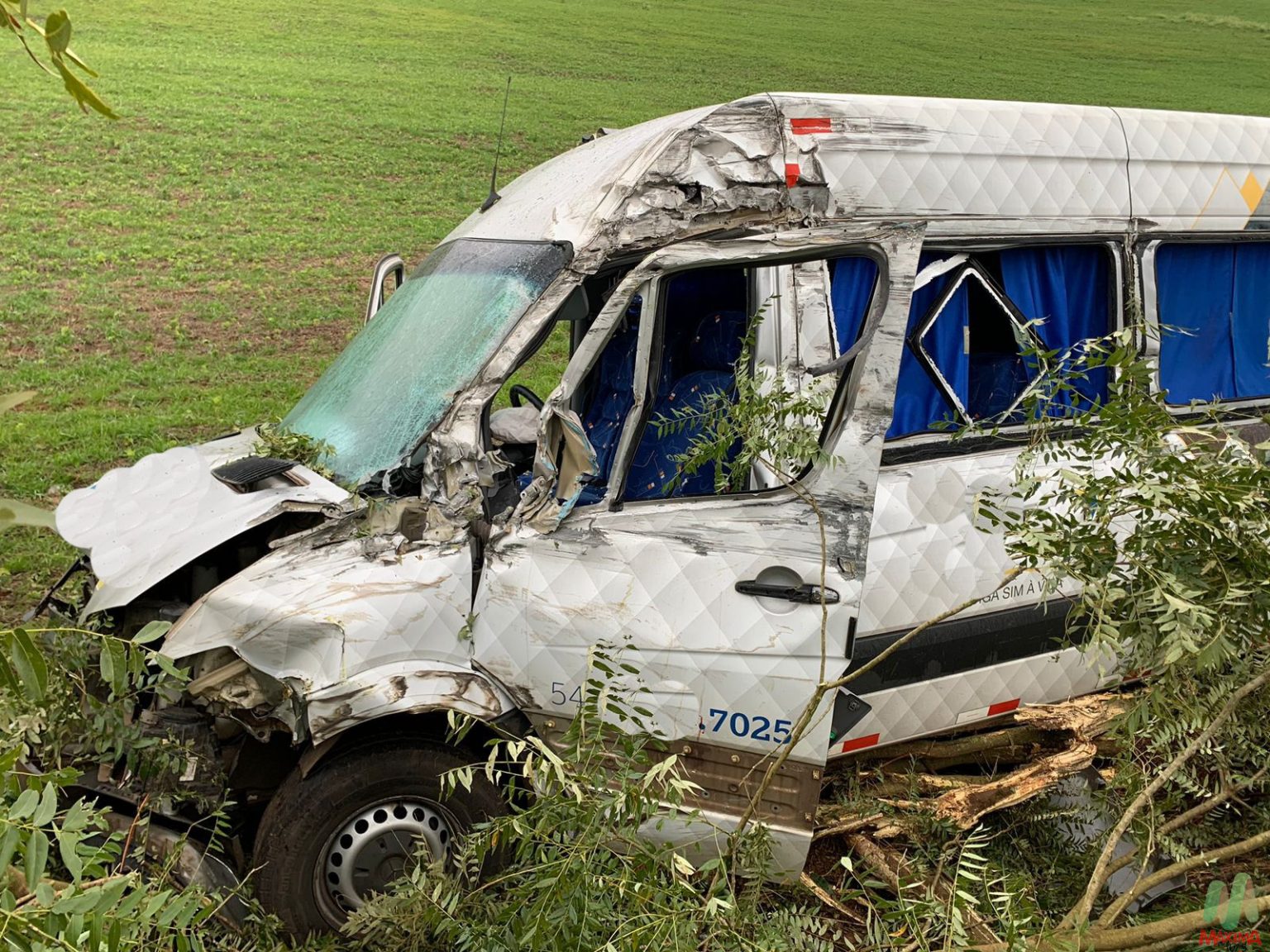 Com a colisão a carreta tombou as margens da rodovia e a Van saiu da pista e colidiu em árvores.