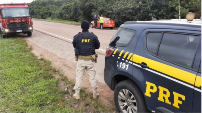 A PRF e Bombeiros realizando isolamento por segurança. A BR 290 está bloqueada em ambos os sentidos no km 172 – Butiá (antes da cidade para quem vem no sentido capital interior) e sem previsão de liberação. Desvios por estradas de chão.