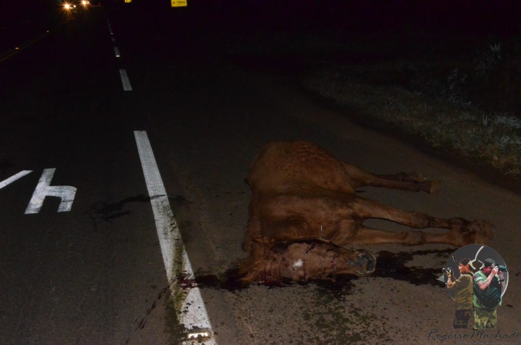 O animal foi retirado da pista para o acostamento por populares, que ainda orientaram o trânsito até a chegada da PRE de Palmeira das Missões.