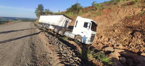 Carreta sai da estrada entre Crissiumal e Nova Candelária