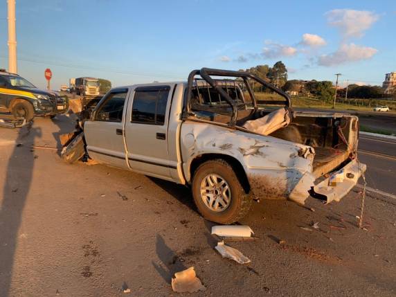 Uma GM S10 saia do posto para atravessar a rodovia, quando cortou a frente de um caminhão Volvo que seguia em direção a Carazinho.