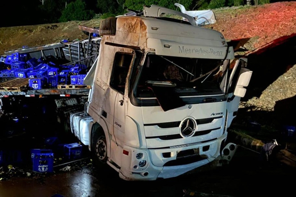 Um caminhão de bebidas que seguia sentido Estação/Sertão saiu da pista e acabou caíndo de uma altura de aproximadamente 20 metros