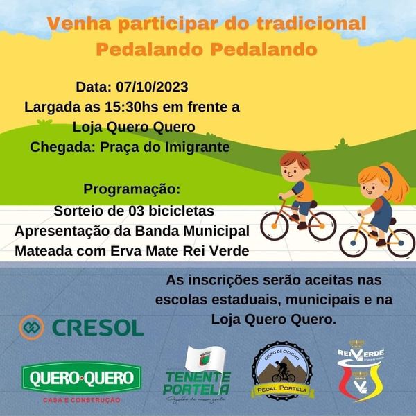 Acontece sábado, 07, o Pedalando Pedalando, e para fazer um convite especial aos nossos ouvintes, estiveram nos estúdios da Rádio Municipal a Gicelda Berghetti Denes, Secretária de Educação, Cultura e Desporto e o Ernani De Carli, Gerente das Lojas Quero-Quero.