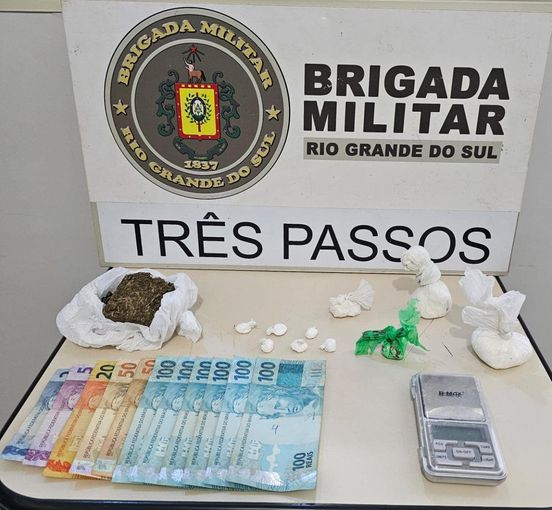 A ação resultou na apreensão de 10 porções de cocaína, uma porção de maconha, uma balança de precisão, um smartphone e uma quantia em dinheiro.