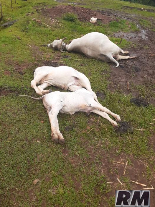 Nesta madrugada de domingo, 10 de dezembro, uma vaca e dois terneiros morreram após queda de raio durante chuva.