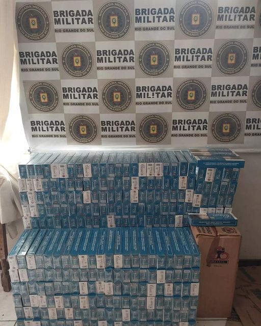 No interior do veículo foram apreendidos 448 pacotes (4480 maços) de cigarro de origem estrangeira, material e veículo apreendidos e estão à disposição da Receita Federal.