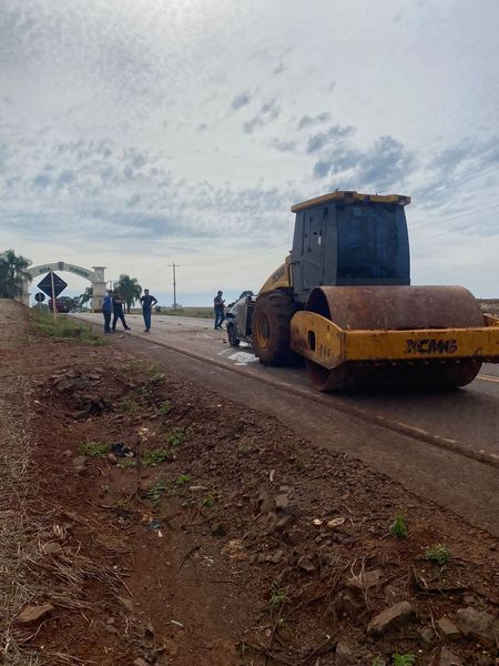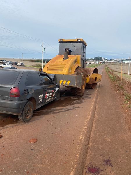 Veículo colide em rolo compressor na RSC-472, em Tenente Portela