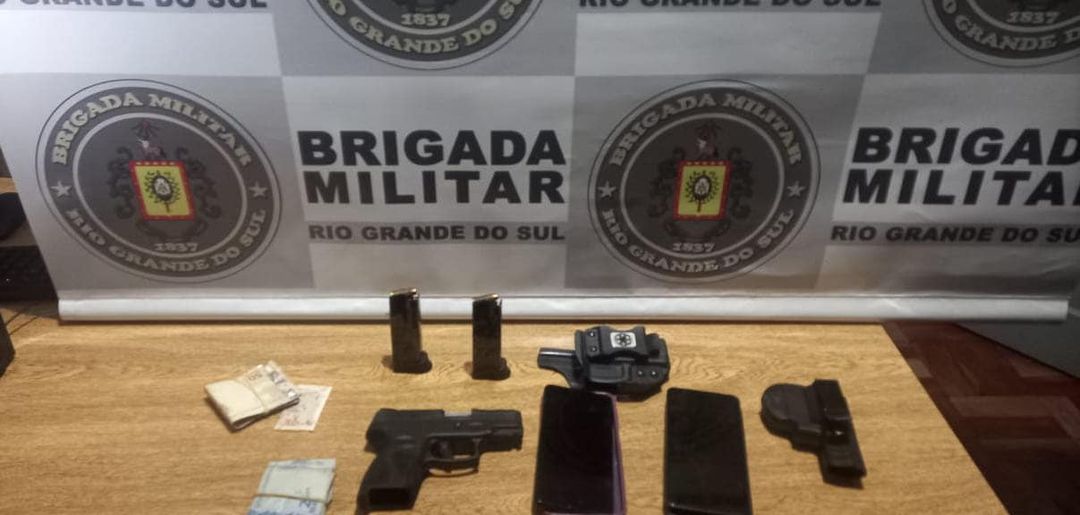 Durante a ação, foi encontrada uma pistola e 23 munições calibre 9mm, além de dois carregadores, uma quantia em dinheiro e dois smartphones.