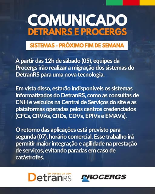 A migração dos sistemas do DetranRS para uma nova tecnologia é parte da constante evolução e aprimoramento das plataformas.