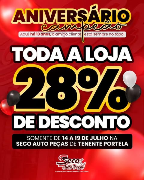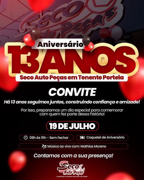 Seco Auto Peças celebra 13 anos de História em Tenente Portela
