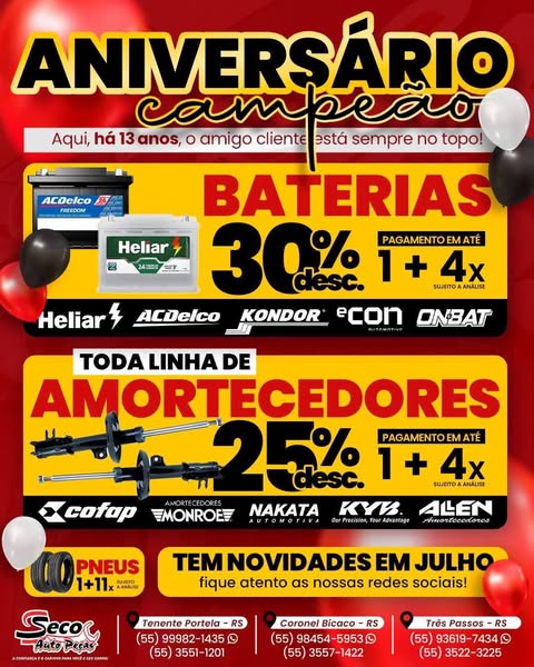 Parabenizamos toda a equipe da Seco Auto Peças por essa linda trajetória de trabalho, crescimento e compromisso com a região. Que venham muitos outros anos de sucesso!
