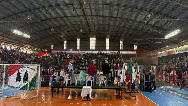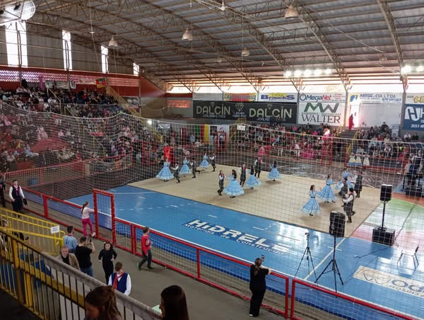 E o que se viu foi um grande espetáculo artístico no tablado montado na quadra do ginásio, 25 invernadas artísticas, divididas em cinco categorias participaram da competição de danças tradicionais. Ainda, em outros dois espaços da escola, ocorreram as modalidades de dança de salão e solista vocal, totalizando mais de 500 participantes, representando 12 CTGs da região.