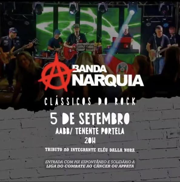 A AABB de Tenente Portela, em parceria com a Banda Anarquia, convida toda a comunidade para uma noite especial de rock clássico. O evento acontece no dia 05 de setembro, a partir das 20h, na sede da AABB, marcando o início das atividades da pré-temporada de verão 2025/2026.