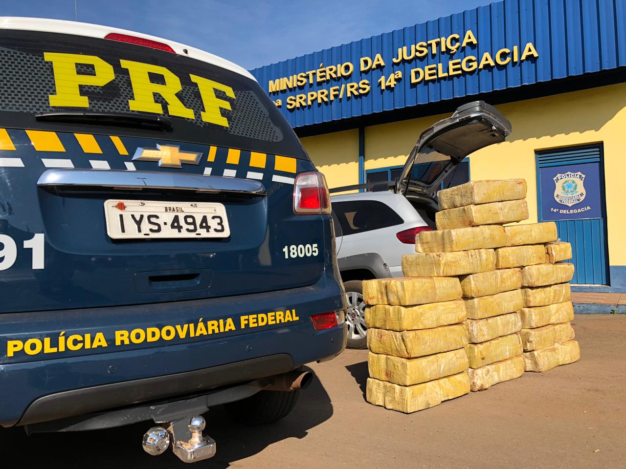 Eles foram abordados e na camioneta, tripulada somente pelo motorista, foram encontrados diversos tabletes de maconha no compartimento de carga. O veículo tinha ocorrência de roubo na cidade de Porto Alegre.