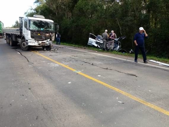 Acidente envolvendo carro, caminhão e micro-ônibus deixa dois mortos na ERS-122
