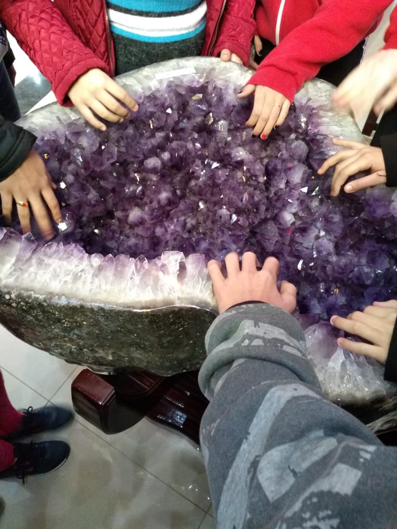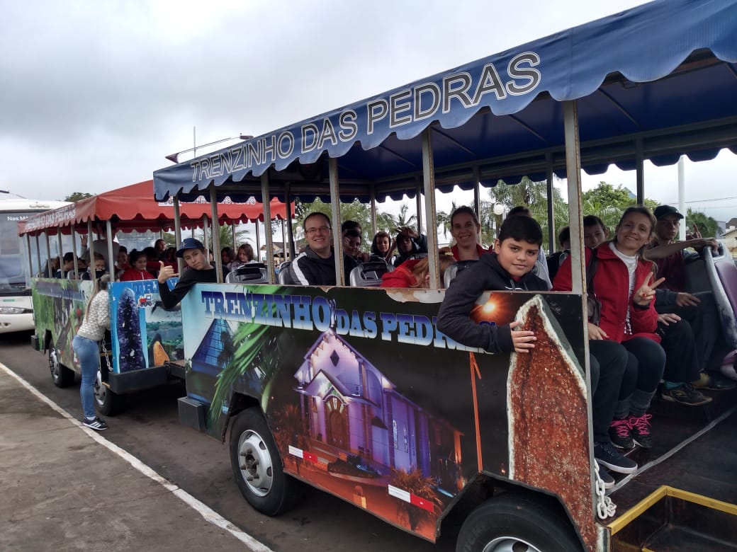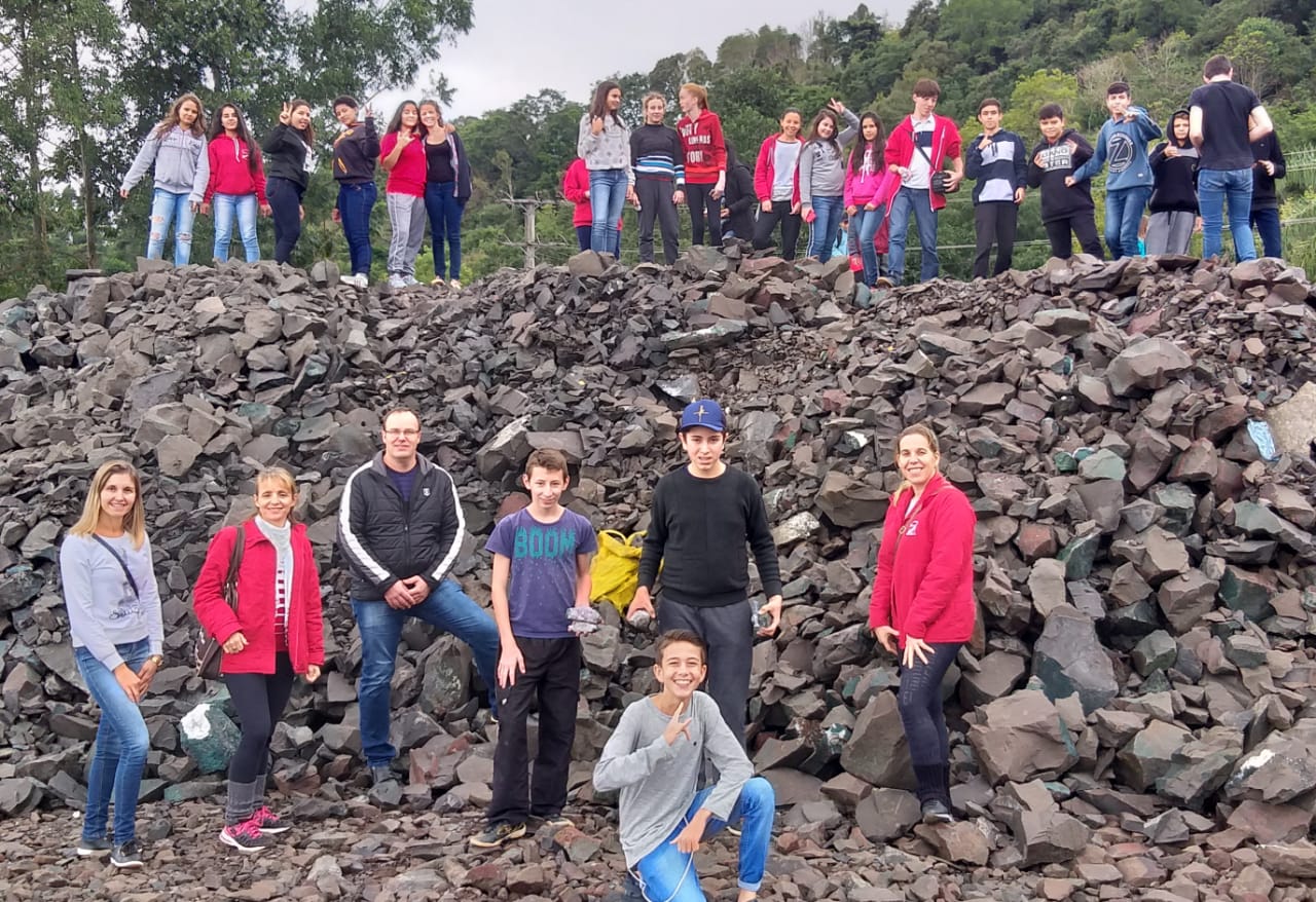 Esta atividade foi a expedição investigativa, onde os alunos puderam observar e questionar sobre o trabalho de extração de pedras preciosas naquele município. Os alunos visitaram alguns pontos turísticos, como: a Igreja, uma mina em atividade, uma loja de pedras preciosas e fizeram um passeio de trenzinho, onde puderam visitar os locais das primeiras extrações, os locais onde são depositados os rejeitos e saber qual o destino do que não é possível utilizar. Por último visitaram a vinícola onde conheceram um pouco mais sobre a produção de vinhos, espumantes e sucos, passando pelos locais de armazenamento dentro de uma mina desativada. Após esta viagem de estudos os alunos reuniram-se em uma roda de diálogo com os professores na Escola, onde conversaram sobre tudo o que viram, sentiram, o que aprenderam e o que ficou de curiosidade para se tornar no tema do projeto das turmas de 8º ano: Explorando a natureza: em busca de pedras preciosas. A partir de agora, juntamente com cada professor os alunos farão pesquisas dentro de cada componente curricular de forma interdisciplinar, construindo conhecimentos.